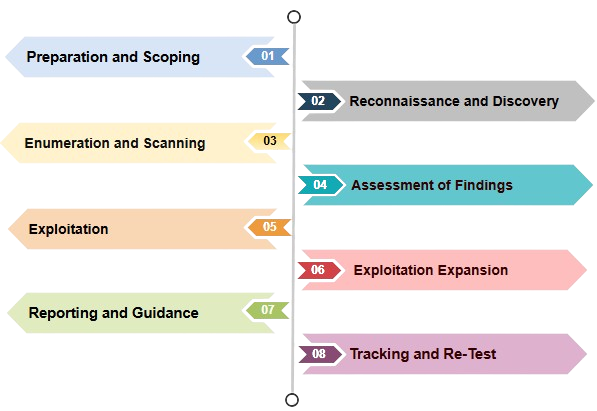 Adhering to a well-defined methodology ensures comprehensive testing, leaving no critical areas overlooked. This disciplined approach allows us to measure security improvements effectively and make informed decisions to strengthen your security posture.